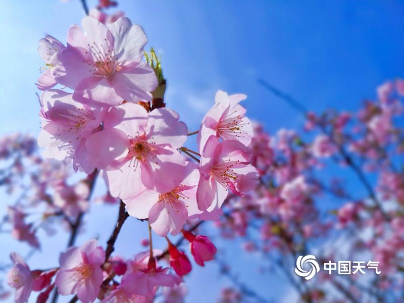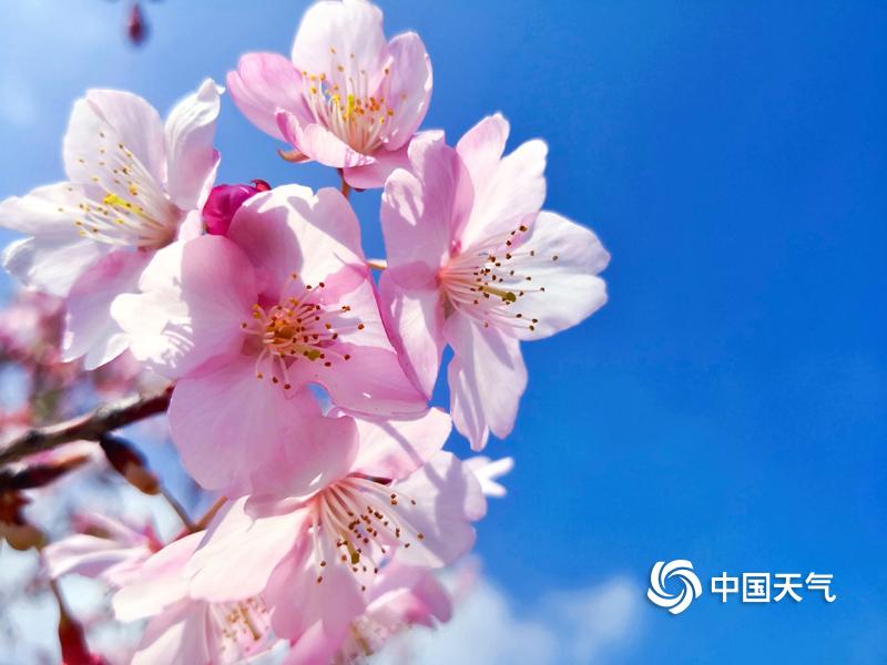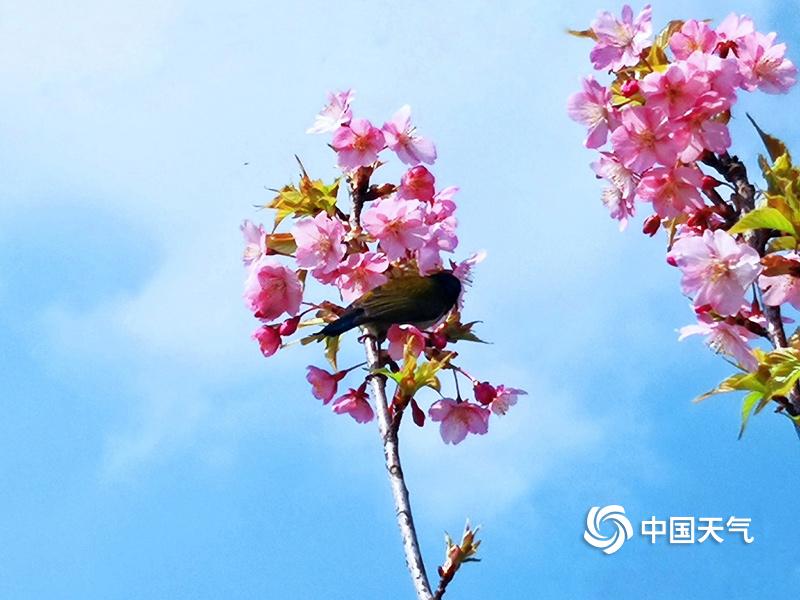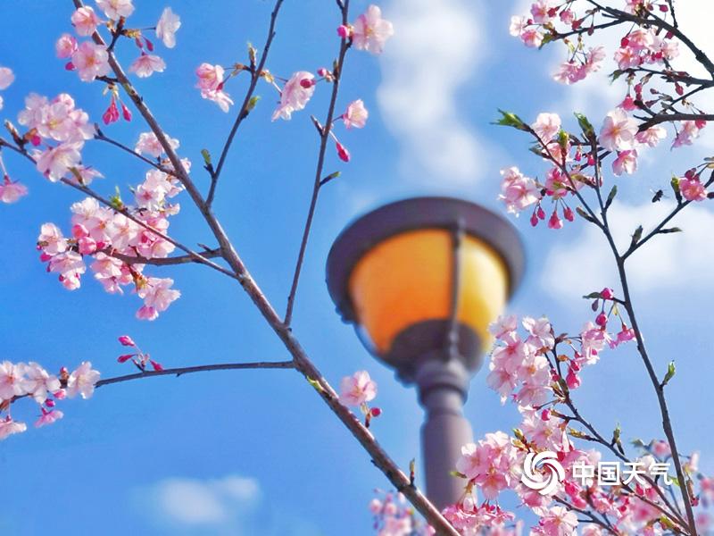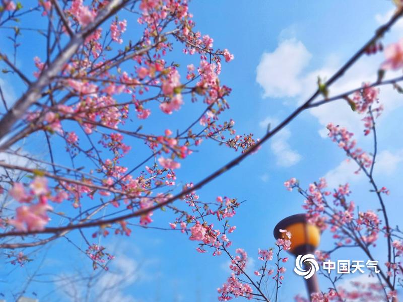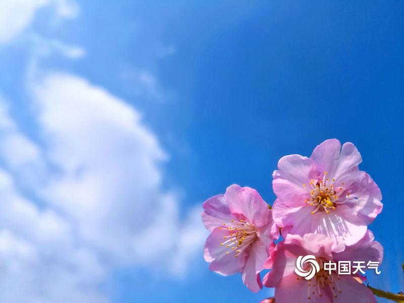 近日天气晴好,风和日丽。永州宋家洲大桥边的樱花已迎着骄阳盛开。和煦的春风、明朗的天空、绯红的樱花,形成一幅舒适的春日丽景。(图文:曾志龙)