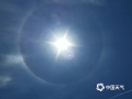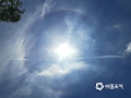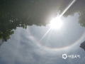 俗语约:“日晕三更雨,月晕午时风”,6月6日早10时至12时,湖南省湘西州土家族苗族自治州花垣县县城上空出现日晕天气,这通常预兆着天气将在短时间内发生改变,会有风雨降临。(文/邬巧琛;图/吴英杰)