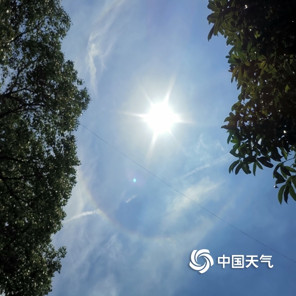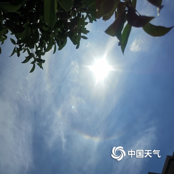 俗语约:“日晕三更雨,月晕午时风”,6月6日早10时至12时,湖南省湘西州土家族苗族自治州花垣县县城上空出现日晕天气,这通常预兆着天气将在短时间内发生改变,会有风雨降临。(文/邬巧琛;图/吴英杰)