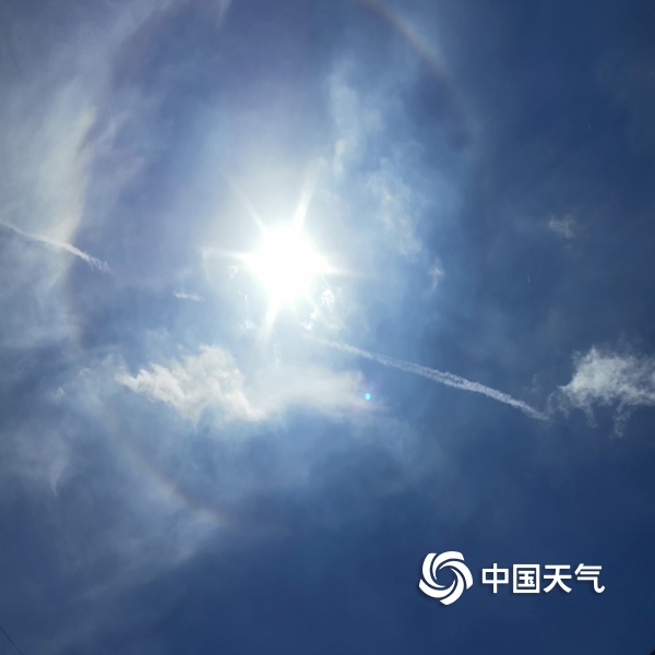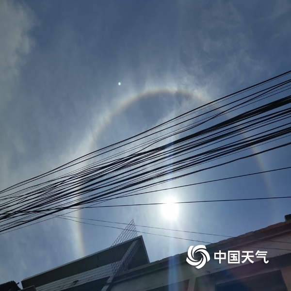 2019年06月06日 16:06俗语约:“日晕三更雨,月晕午时风”,6月6日早10时至12时,湖南省湘西州土家族苗族自治州花垣县县城上空出现日晕天气,这通常预兆着天气将在短时间内发生改变,会有风雨降临。(文/邬巧琛;图/吴英杰)