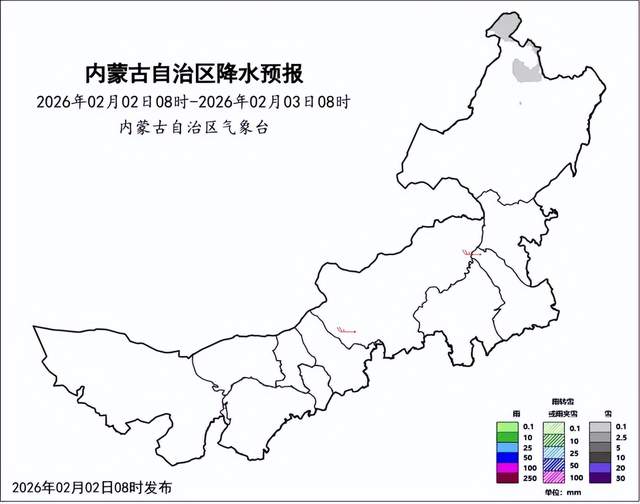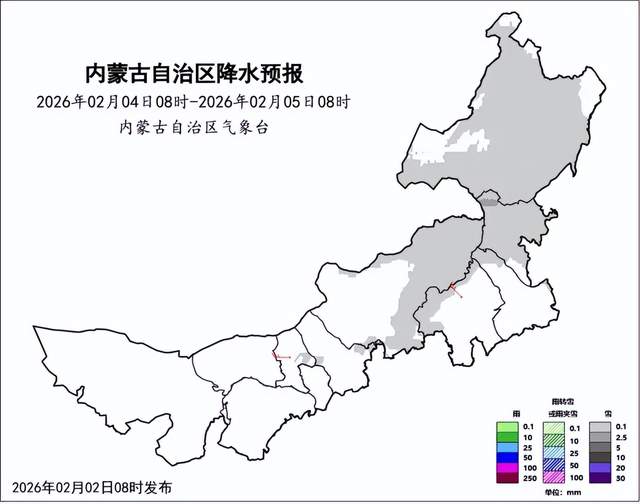 2月以晴朗开场,从昨天到今天,内蒙古大部阳光在线,降雪主要出现在锡林郭勒盟、赤峰市。监测显示,过去24小时,全区共15个旗县89个站点出现小雪,其中,锡林郭勒盟阿巴嘎旗那仁宝拉格苏木金地矿业1.4毫米、查干淖尔1.3毫米、正镶白旗伊和淖尔苏木巴音辉苏嘎查1.2毫米。