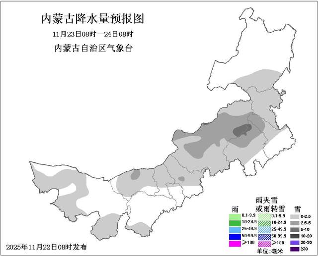 23日08时至24日08时,中西部大部、东部偏南地区多云,有小雪,其中,巴彦淖尔市北部部分地区、乌兰察布市中部部分地区、锡林郭勒盟北部和东南部、赤峰市北部、通辽市西北部地区有中雪,局地有大雪;西部、中部偏西地区4、5级短时6、7级局地8、9级偏西风或西北风,西部偏西和偏北部分地区伴有沙尘天气;中西部大部、东部偏西和偏北地区气温下降4到6℃,西部偏西和偏北、东北部大部地区气温下降6到8℃,局部地区气温下降10℃以上。