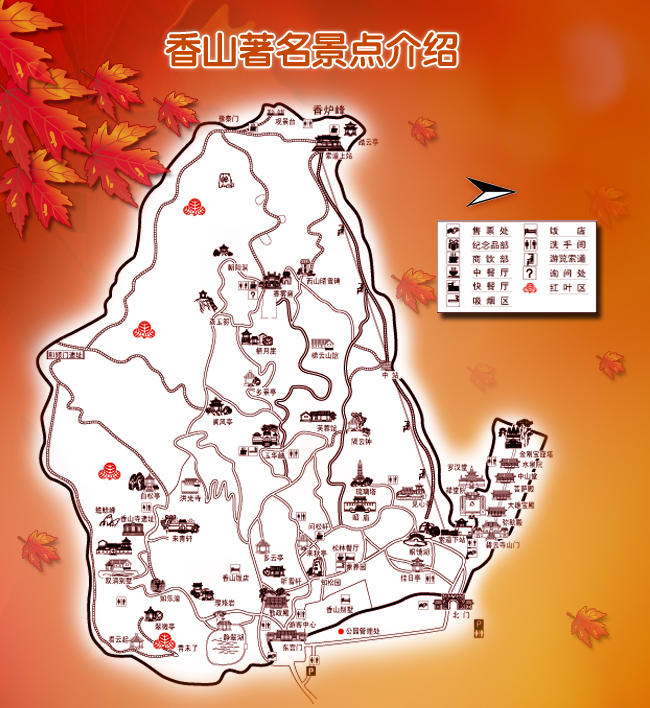 香炉峰是香山的顶峰,海拔557米,因山顶处有一巨石,从远处眺望形如香炉,加之周围常常出现云雾缭绕的动人景象,看来犹如香烟弥漫而得名。又因山势陡峭,不容易攀登,被人们称为“鬼见愁”。站在香炉峰远眺四野,可将西山美景尽收眼底。