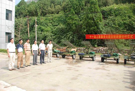 7月14日上午,“十一“运济南作业区域消减雨人影火箭发射装置全部到位,在济南人工影响天气指挥中心,举行了交接仪式。标志着济南市气象局全运保障工作进入到实战阶段。济南市气象局任健局长介绍了济南气象局的全运气象保障准备情况和南京“十”运会的气象服务和人影消减雨工作。仪式现场进行了消减雨作业实际操作,演练了指挥和作业系统。“十一”运组委会保障部官员高度评价了济南气象局的工作,认可济南气象局将气象科技运用到“十一”运工作中。参加仪式的有“十一”运组委会保障部官员、省人民政府人影办领导、济南市气象局领导、市人影办领导和设备厂家人员,以及作业指挥员和作业人员。