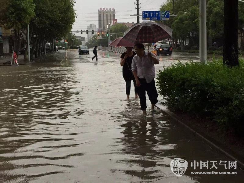 上海市气象局台风外场观测及实验小组赶回余姚市区,“灿鸿”给这个地区留下了一片狼藉,余姚市区内积水严重。