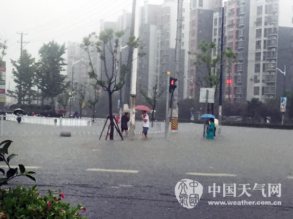 2015年08月24日 12:598月24日早高峰,上海遭暴雨,嘉定江桥万达积水严重,积水深及膝盖。(摄影:卯卯)