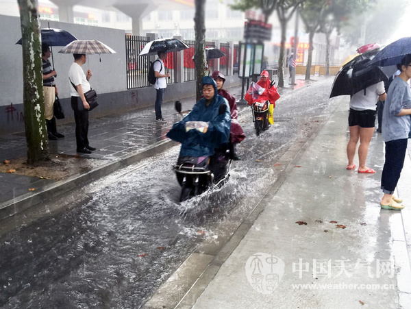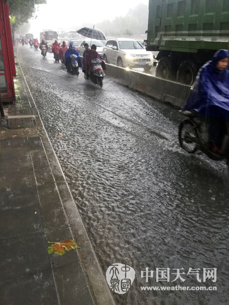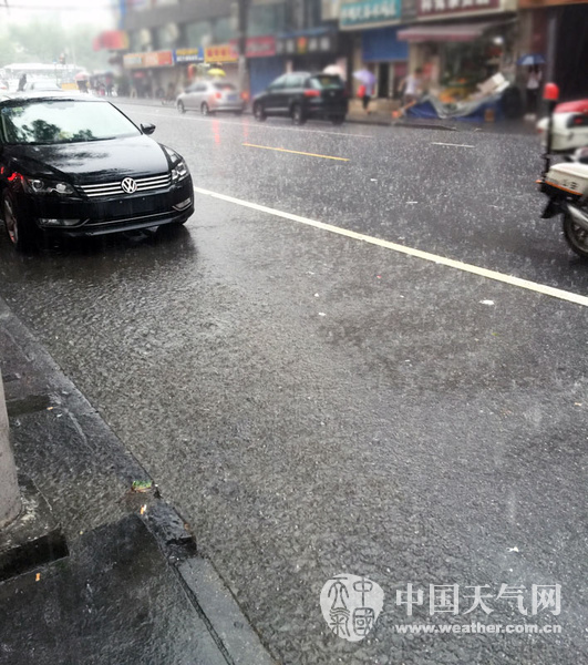 2015年08月24日 12:588月14日早高峰,上海遭暴雨,徐汇区部分马路出现积水。(摄影:卯卯)