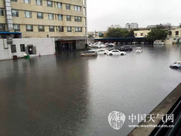 2015年08月24日 12:598月24日早高峰,上海遭暴雨,嘉定区一沿街公司雨水倒灌,积水严重。(摄影:麦小迪)