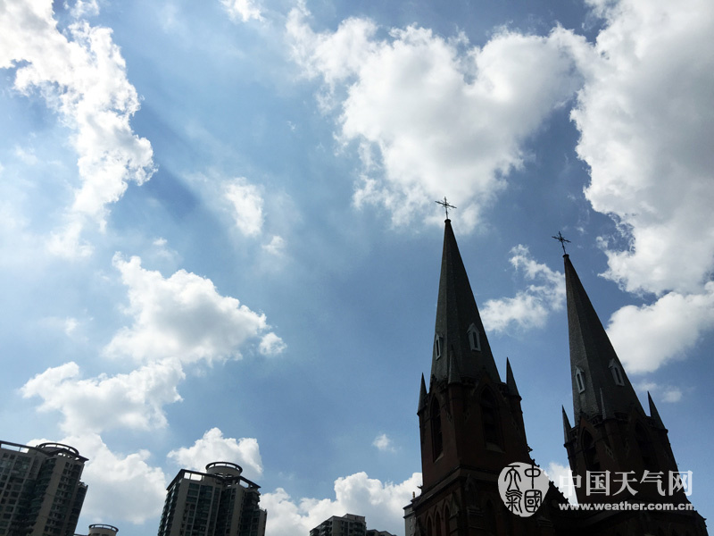 上海近期的天空一直延续“明信片”模式,今天(8日)迎来“白露”节气,蓝天映衬朵朵白云,随手按快门,即成“大片”。(拍摄:卯卯)