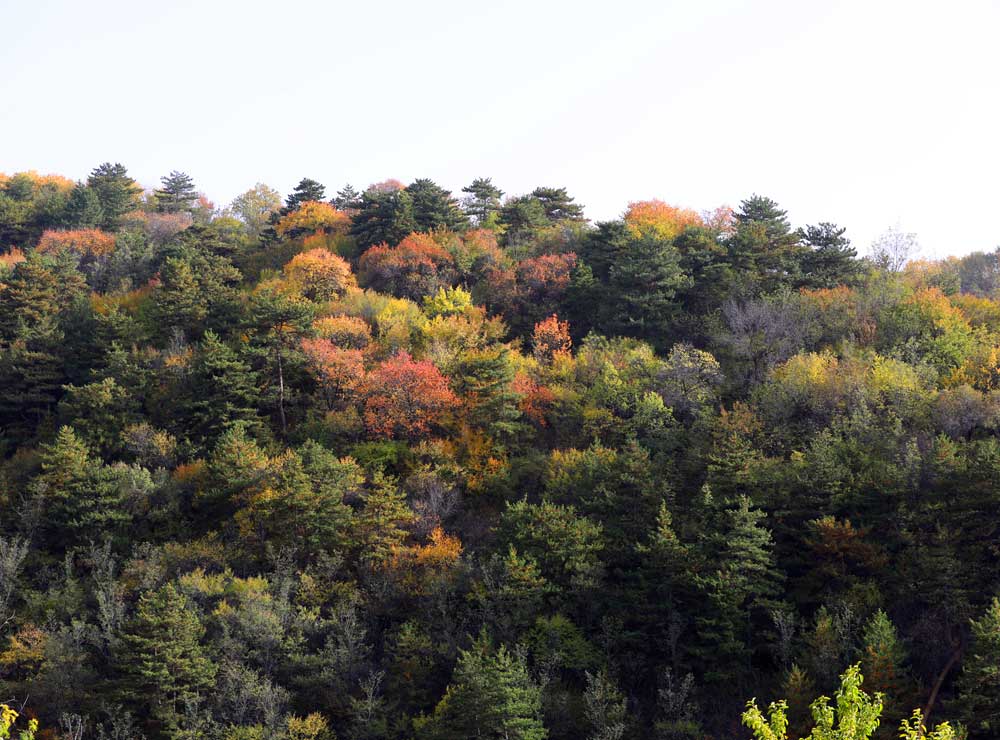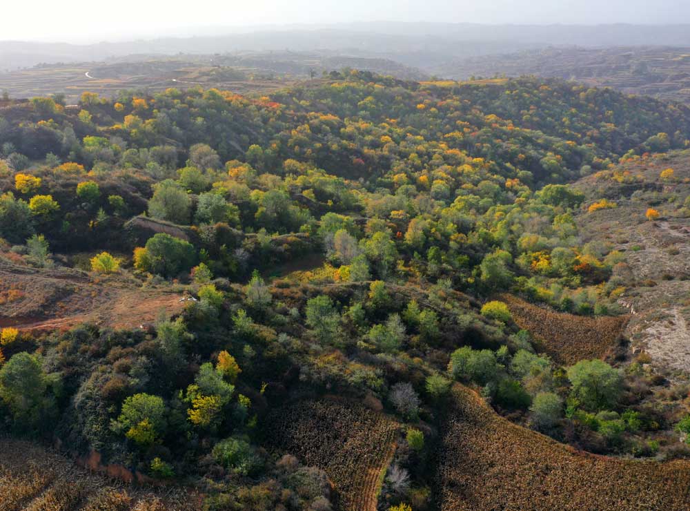 中国天气网讯  每逢秋季,山西太原西山的松柏叠翠郁郁葱葱,黄叶飘零漫天飞舞。站在西山山顶,向远处眺望,五彩绚丽的自然景观,让人沉醉。(文:常晓慧、图:冯力博)