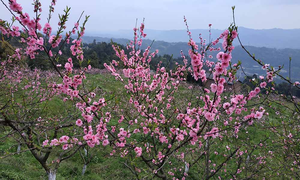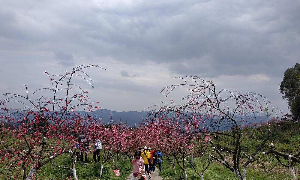 从3月20号开始,宜宾市南广镇七星山金坪村第四届桃花节正式开幕。七星山上的镜湖桃源有上千亩的桃林,成片的桃花热情似火,连绵数里开成了红色的海洋,美轮美奂。3月24日,桃花竞相开放,七星山吸引了大批市民驻足观赏、拍照。(图/唐轶、文/余帅)