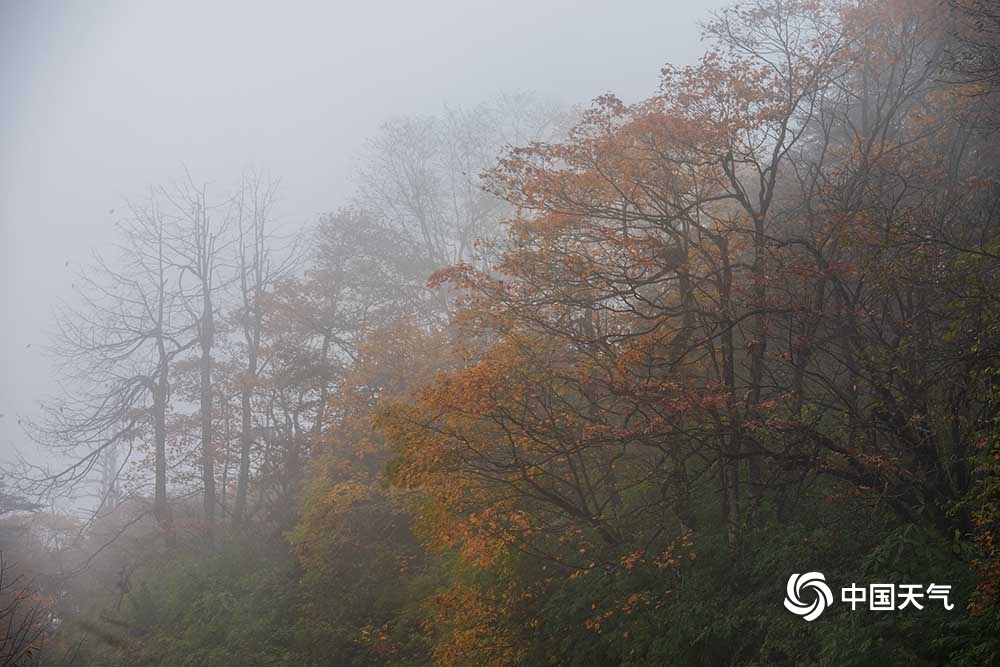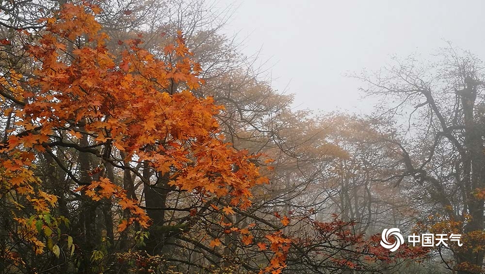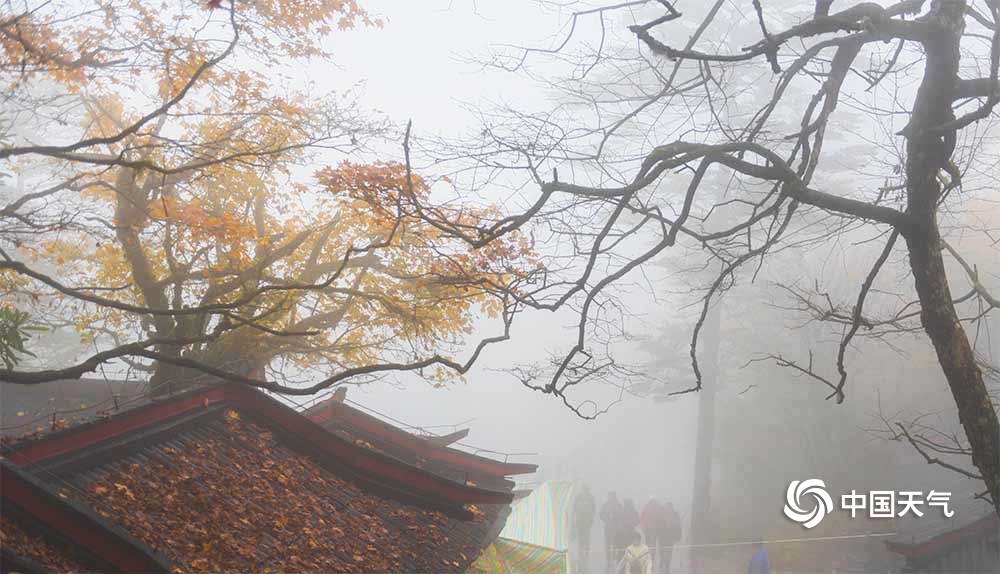 中国天气网讯 峨眉山一年四季有不同的美,这个季节来峨眉山,可以欣赏到一年中最多彩的美景,红的、黄的,在一路上山途中眼前不断变换着各色美景。而到了雷洞坪一带,云雾中的秋景更是平添了一股仙气,让人如坠云端。 图/文 张世妨