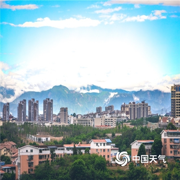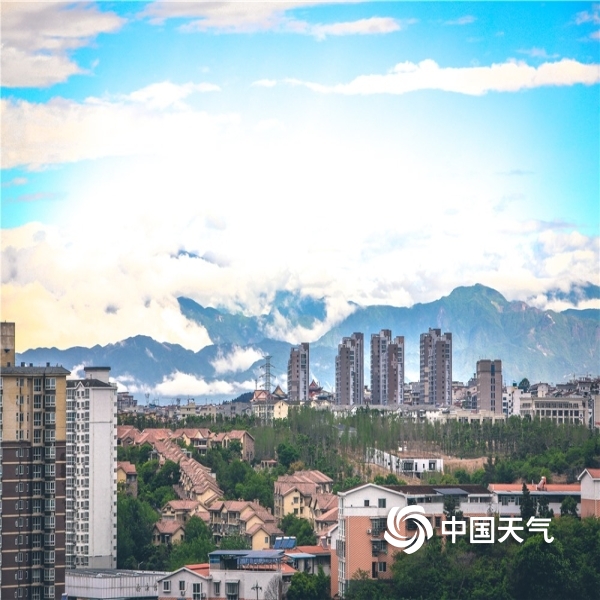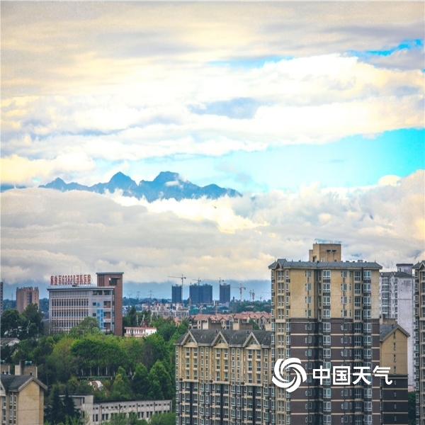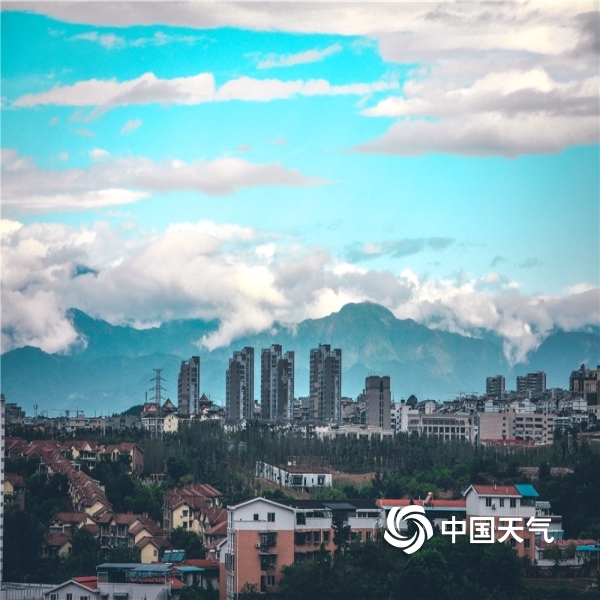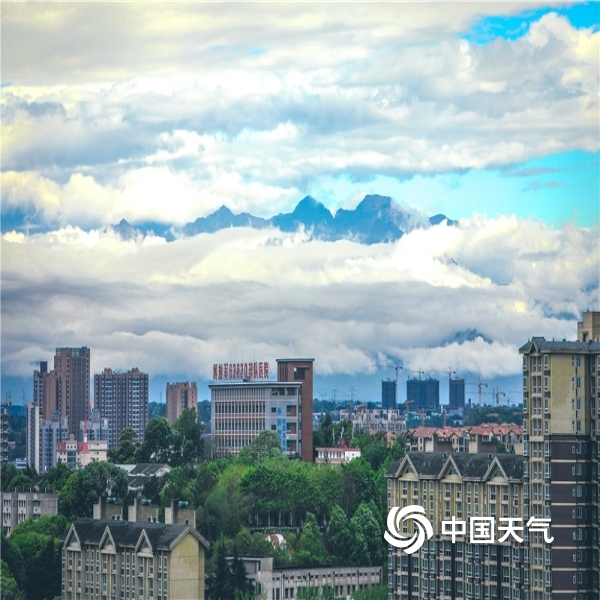 中国天气网讯 风雨过后,绵阳被绿水青山环绕,遥望城西,几十公里外的龙门山脉清晰可见,神秘又庄严。在云雾缭绕之中,如梦如幻如海市蜃楼。(图/冯宝安 胡文文)