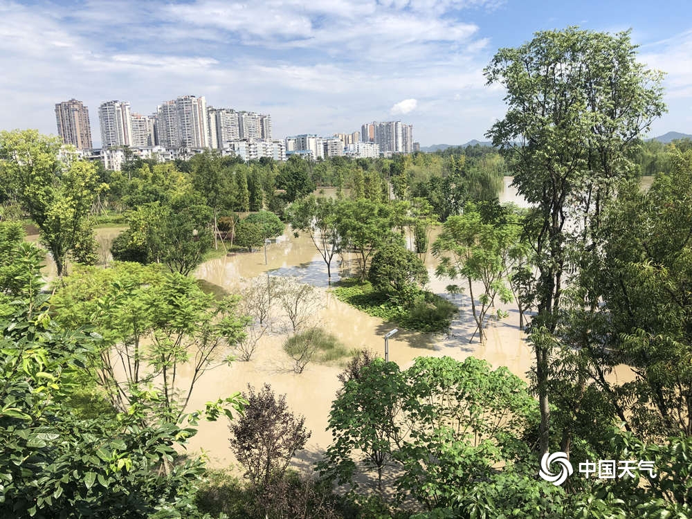 受涪江上游绵阳和德阳等地区持续性强降雨影响,遂宁市南北堰水位超警戒线,洪峰过境至遂宁,导致湿地公园被淹。