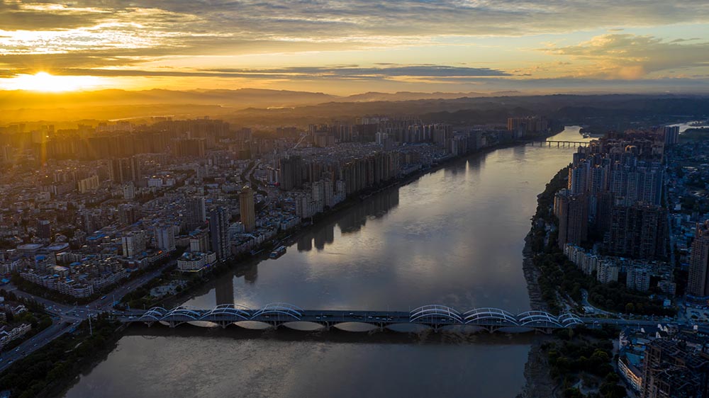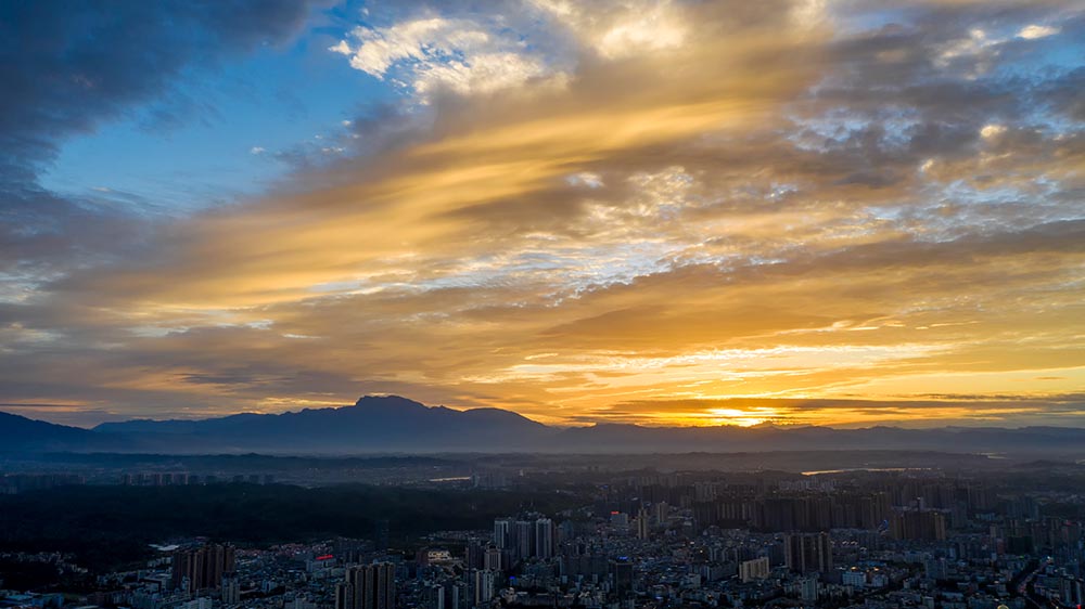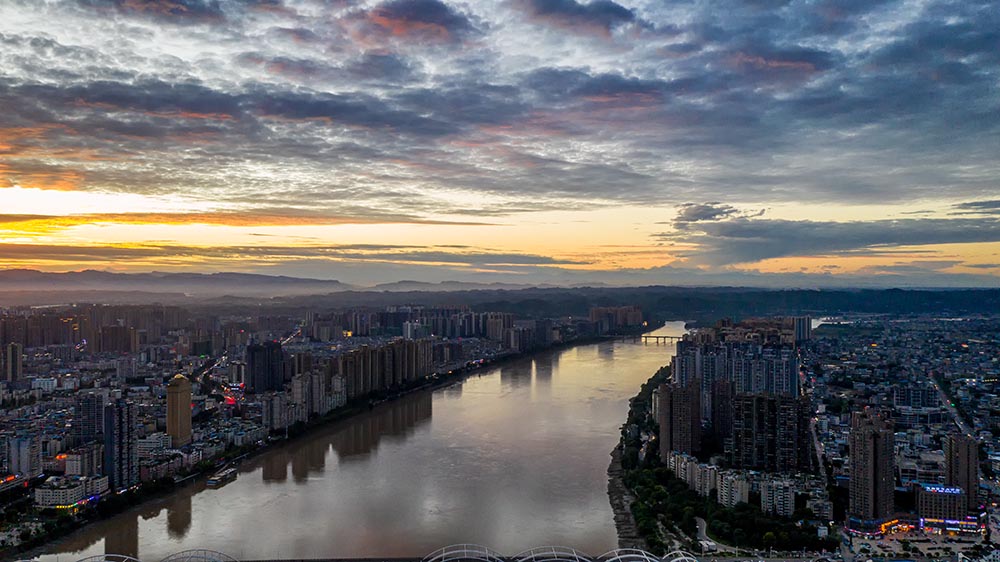 洪水退却 乐山迎来醉美晚霞(1/8)