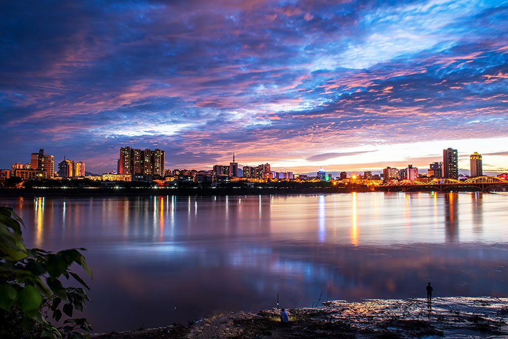 中国天气网讯 乐山遭遇百年一遇大洪灾之后,迎来了新一轮降水。但这次降水来去匆匆,雨过放晴,傍晚时分,迎来乐山难得一见的超美晚霞,直到华灯初放,红霞仍未散去。路人纷纷驻足抬头欣赏老天难得的馈赠,这样的天空也算是给灾后的乐山一丝慰藉。(图文/张世妨)