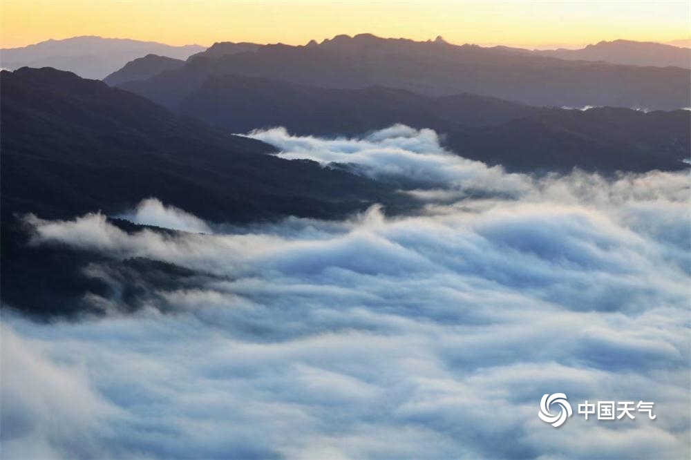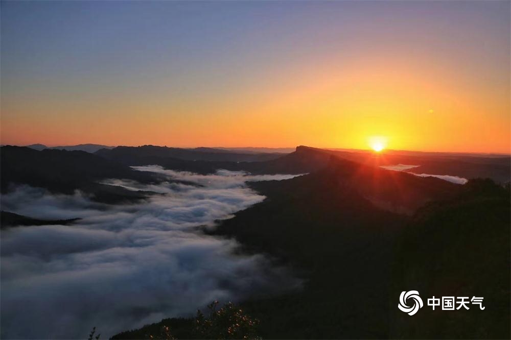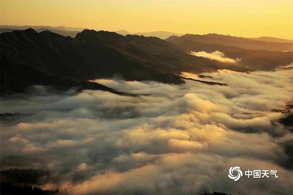 中国天气网讯 雨过天晴,登上剑门后山鸡心寨,远眺剑门群峰在翻腾的云海中时隐时现,喷薄而出的朝阳给剑门关铺上一层金色的锦缎……实在太美啦!(图文/罗邦建)