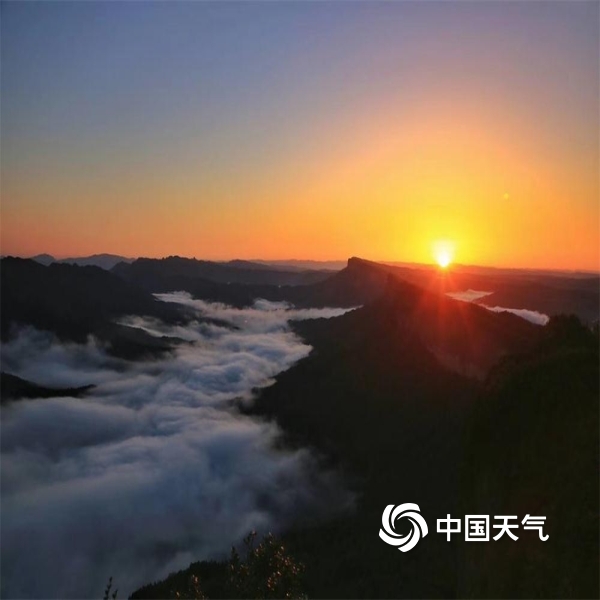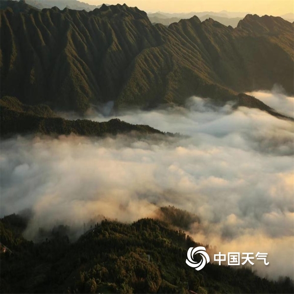 中国天气网讯 雨过天晴,登上剑门后山鸡心寨,远眺剑门群峰在翻腾的云海中时隐时现,喷薄而出的朝阳给剑门关铺上一层金色的锦缎……实在太美啦!(图文/罗邦建)