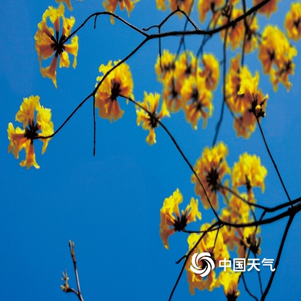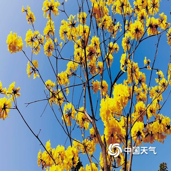 2021年03月03日 10:10中国天气网讯 三月的攀枝花在暖阳的助力下,最高气温已达到27℃左右,温暖的气候让这座城市来到了最美的季节,处处传递出强烈的春天气息,黄花风铃木在湛蓝的天空衬托下,显得格外的耀眼,一簇簇金黄色惊艳了你的眼眸。图片2021年3月2日拍摄于四川攀枝花。(图文/肖寒)