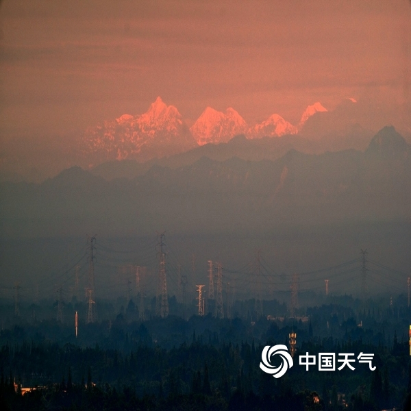 中国天气网讯:9月初从成都万家湾遥望雪山,让我不禁感叹在成都有一种生活方式,叫“在成都遥望雪山”,东看朝霞,西望雪山,杜甫那句“窗含西岭千秋雪”,如今已成了阳台外的一道常见的风景。一年之中,在成都最佳观看雪山的时间从3、4月开始一直持续到7、8月份,6—8月份是一年中观看雪山的最佳时机,随着空气质量的转好,能看到雪山的天数也逐渐慢慢增加。(图/人世浩渺)