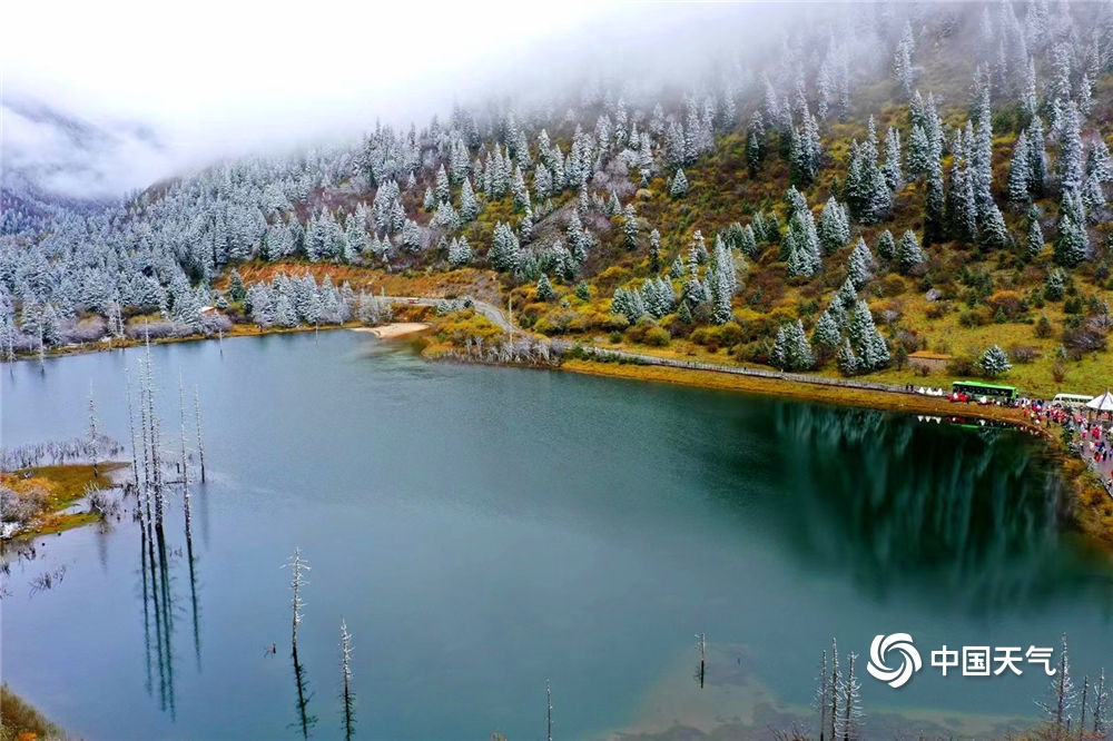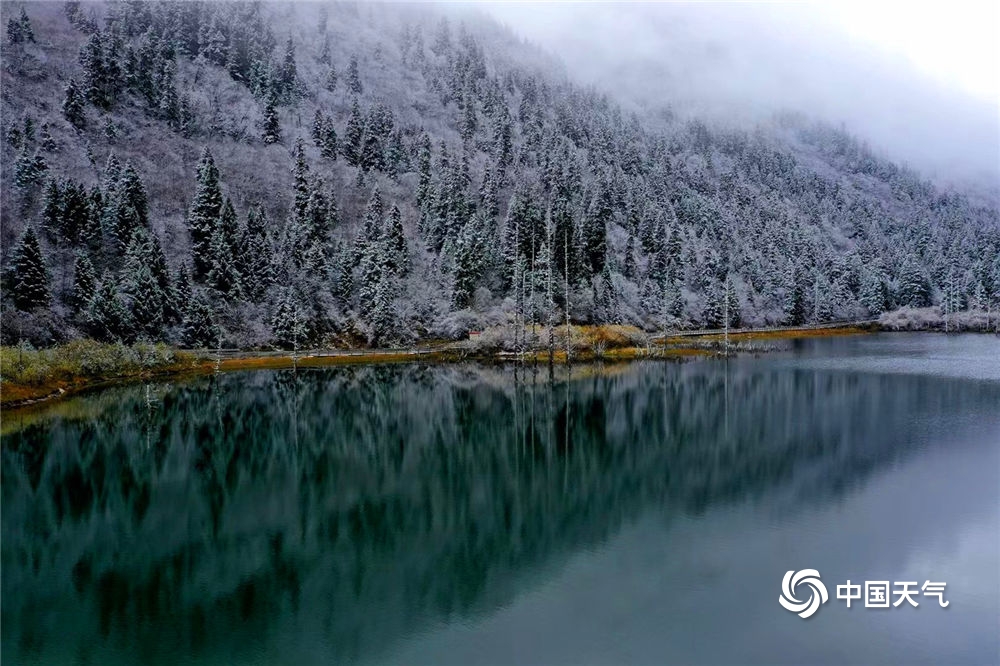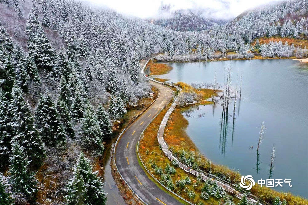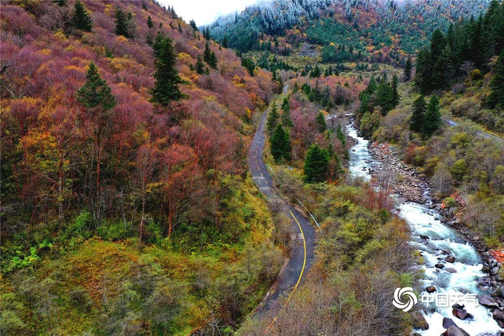中国天气网讯 进入达古冰川景区,洋洋洒洒六十里的彩林简直美哭!近处有湖,水静如镜,色蓝如翡翠;远处,漫山遍野,层林尽染万分耀眼,薄雾弥漫在彩林之上,更有雪与五彩斑斓的颜色碰撞,那是秋日绚烂与灵韵冬色的奇妙碰撞。这里仿佛是一幅长长的油画在你面前徐徐展开,让人恍觉来到了世外桃源之地,脱离城市的烦闷与苦恼,只觉身与心得到了极大的慰藉。(图/王雄建 文/李颖)