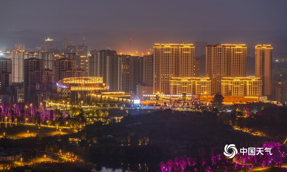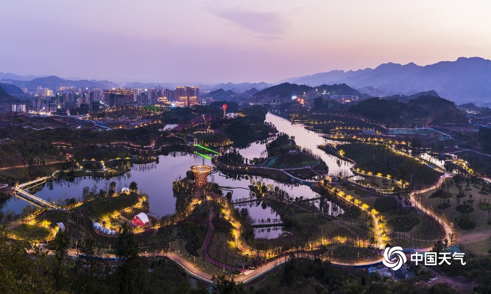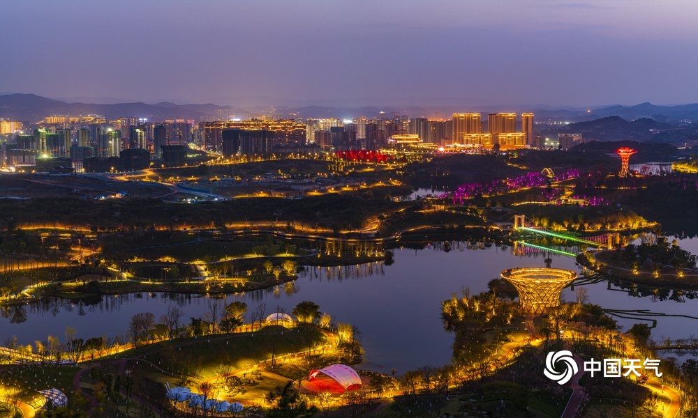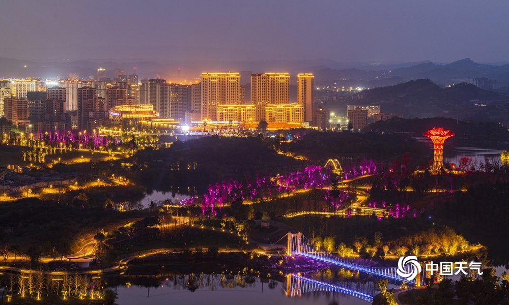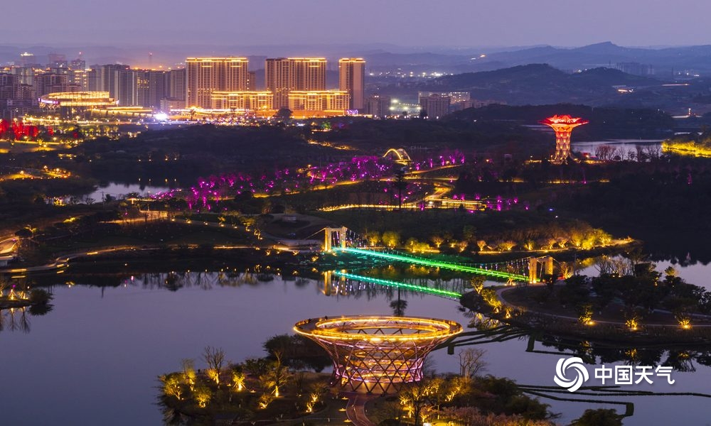中国天气网讯 莲花湖湿地公园是四川省达州市一道亮丽的风景线,其位于达州市通川区西北角,地处郊外山林之中,山水相依,岛屿林立。当入夜时的灯光渐渐亮起,随着一湖碧水微澜轻晃,在醉人的夜色里停停走走,享受难得的闲适、恬淡、静谧时光。(文/覃娅 图/黄勇)