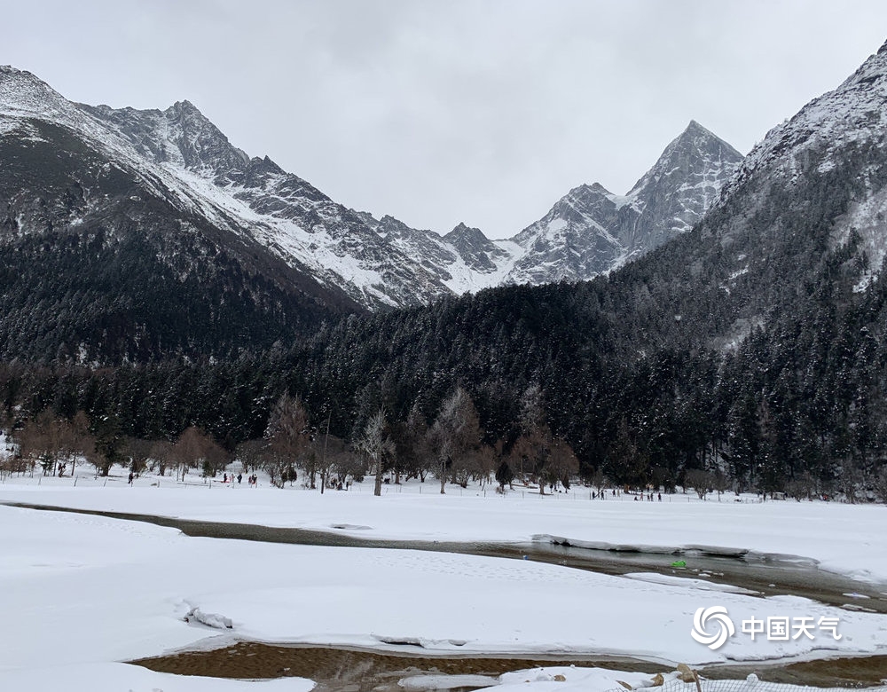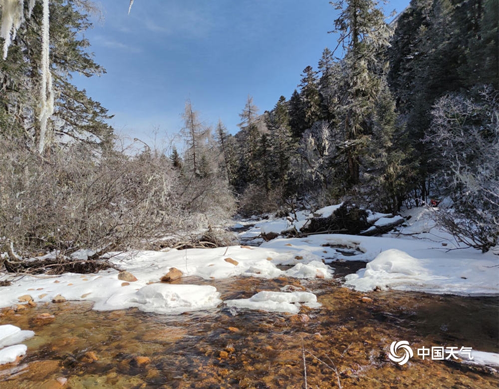 中国天气网讯 毕棚沟,成都西北伊甸园,离都市最近的高原风光,离喧嚣最远的人间阆苑!景区内有天地八绝:“原始森林、湿地草甸、高原湖泊、溪流瀑布、终年冰川、千年雪山、彩铃红叶、峡谷温泉”。摄于2022年2月8日四川省阿坝藏族羌族自治州理县毕棚沟(图/勾紫涵)