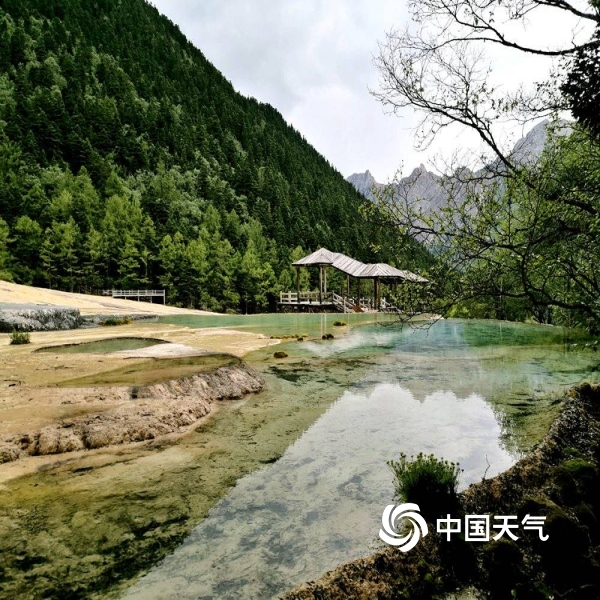 2022年07月07日 11:18中国天气网讯 阿坝州松潘县黄龙景区真的是水清至极,水质明丽的池群呈梯田状排列,像是一面面宝镜层层叠叠地排列下来,远处崖峰峻峭,植被繁茂,置身其中仿佛被绿色包裹,这些简直让人清爽无比!(图/邓海明 文/李颖)7月6日邓海明摄于阿坝州松潘县