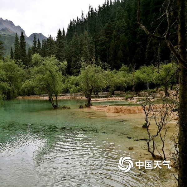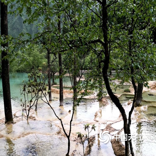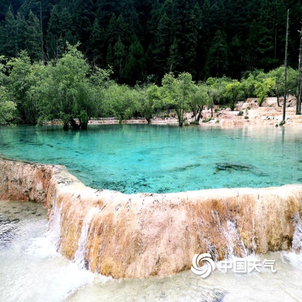 中国天气网讯 阿坝州松潘县黄龙景区真的是水清至极,水质明丽的池群呈梯田状排列,像是一面面宝镜层层叠叠地排列下来,远处崖峰峻峭,植被繁茂,置身其中仿佛被绿色包裹,这些简直让人清爽无比!(图/邓海明 文/李颖)7月6日邓海明摄于阿坝州松潘县
