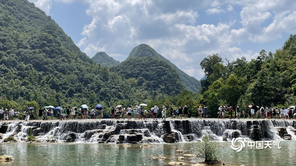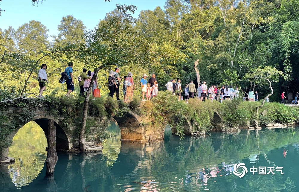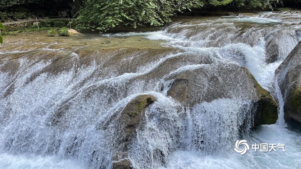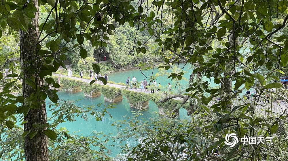 中国天气网讯 贵州荔波小七孔,有小九寨之美称,被誉为地球绿宝石。是集山、水、林、洞、湖、瀑为一体的原始奇景。有幽蓝深邃的卧龙潭,山水环绕的翠谷湿地,飞流直下的拉雅瀑布,潭瀑交错的68级瀑布,林溪穿插的水上森林……(图片拍摄8月1日 李镇洪)