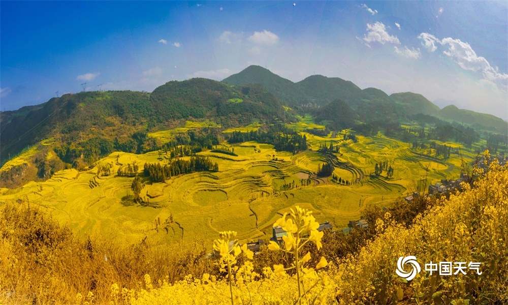 罗平万亩油菜花陆续绽放,阳光正好,蓝天白云下,金黄色油菜花竞相开放,绵延至远方黛青色的丘陵,融入蔚蓝的天际,组成了美妙的风景画!