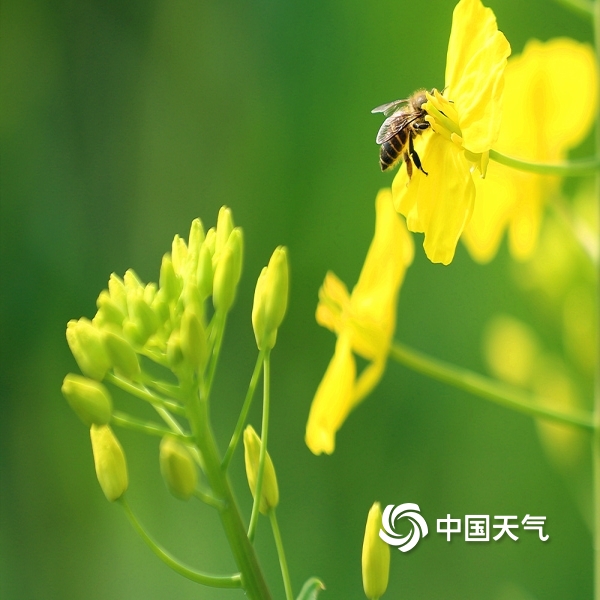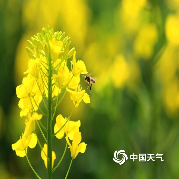 2023年03月03日 15:11中国天气网讯 “凌寒冒雪几经霜,一沐春风万顷黄”。时至“九九”天,在四川广安,郊外油菜花正灿然而开,更有蜂儿勤劳、穿梭其间采蜜忙,处处一派艳阳天风光。拍摄时间:3月3日;地点:广安区花桥镇。(图/文 董雪梅)
