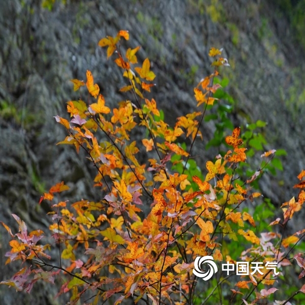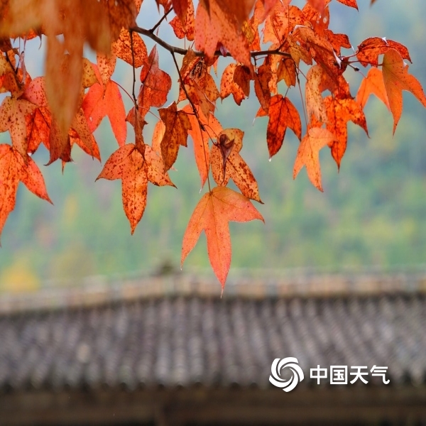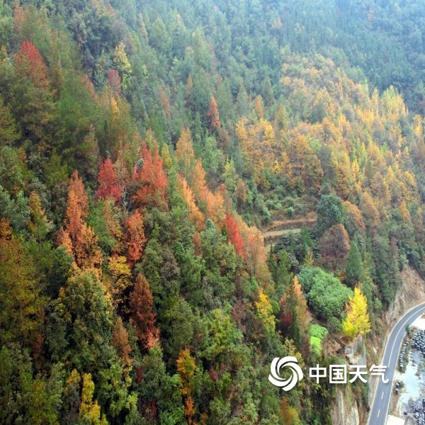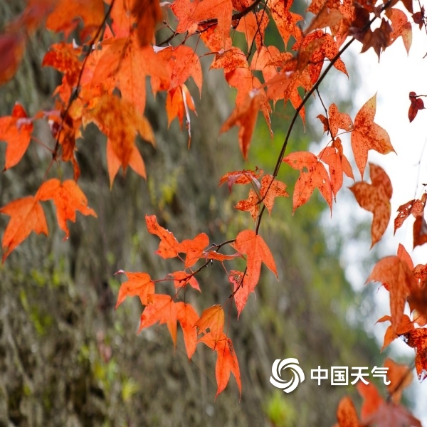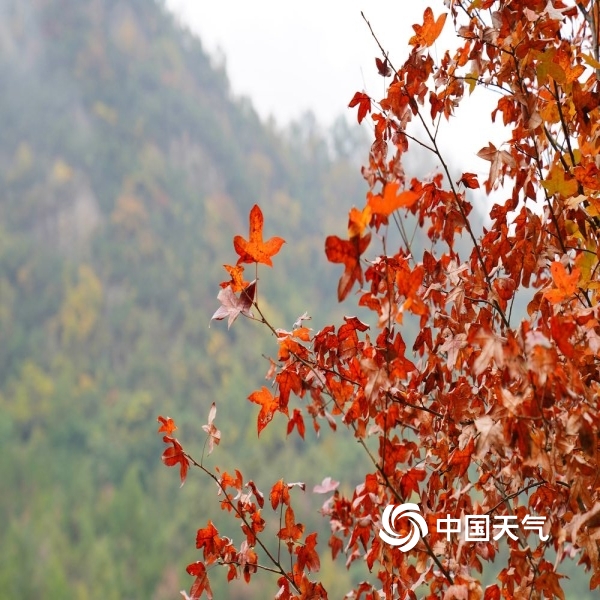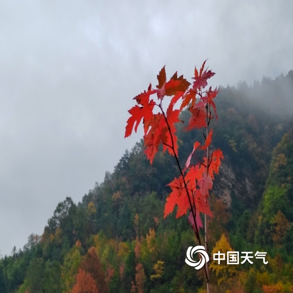 2023年11月11日 14:16中国天气网讯 “停车坐爱枫林晚,霜叶红于二月花。”在绵阳江油的枫顺乡,走进山林,就犹如走进五彩缤纷的世界,一颗颗红枫树铺满了山间。红色中透着绿意,又或是绿毯上燃烧着一团团红色的火焰。走近看,偏偏火红的枫叶上又挂着雨珠,晶莹剔透,在这深秋的季节里,一下子浪漫了起来。(拍摄时间:11月10日)