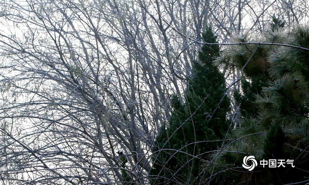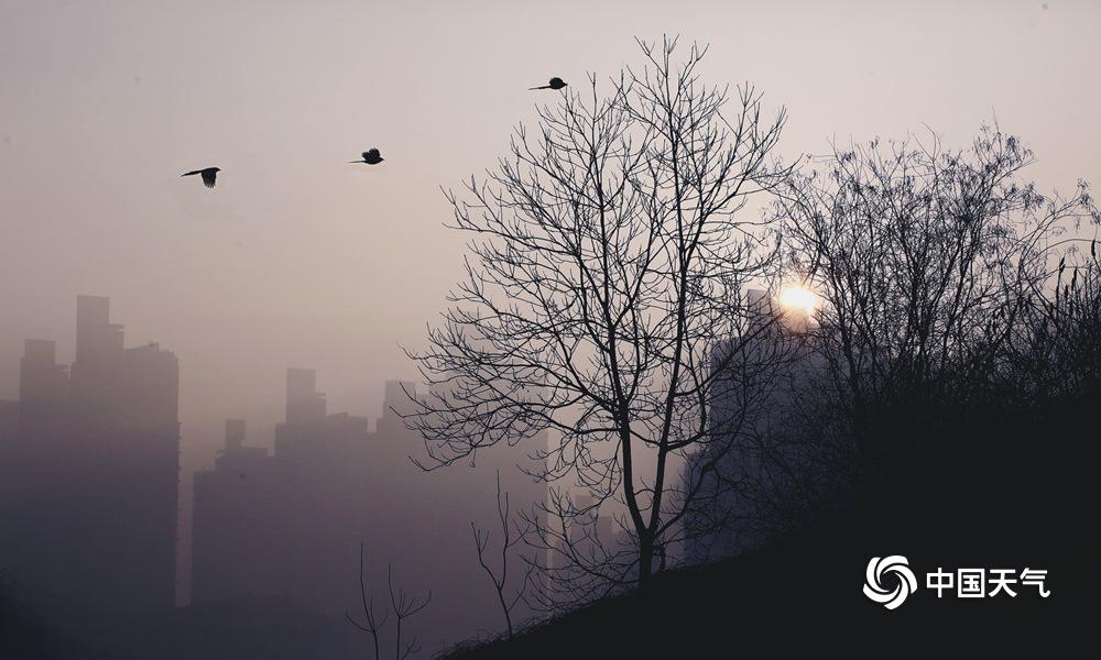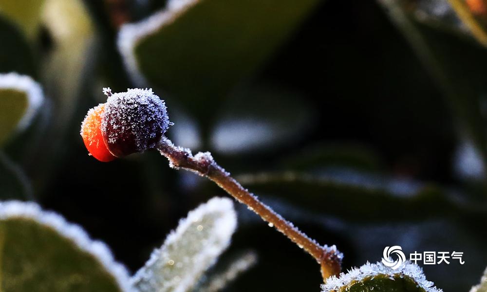 近日,浓雾锁津门,天空一片阴沉。昨天,适逢腊八,雾意慢慢消散,迎来了日出。请欣赏霜晨的日出、树丛飞鸟及蔷薇叶,蛛丝,冬青枝叶上的小冰晶。(宛公展/摄影)