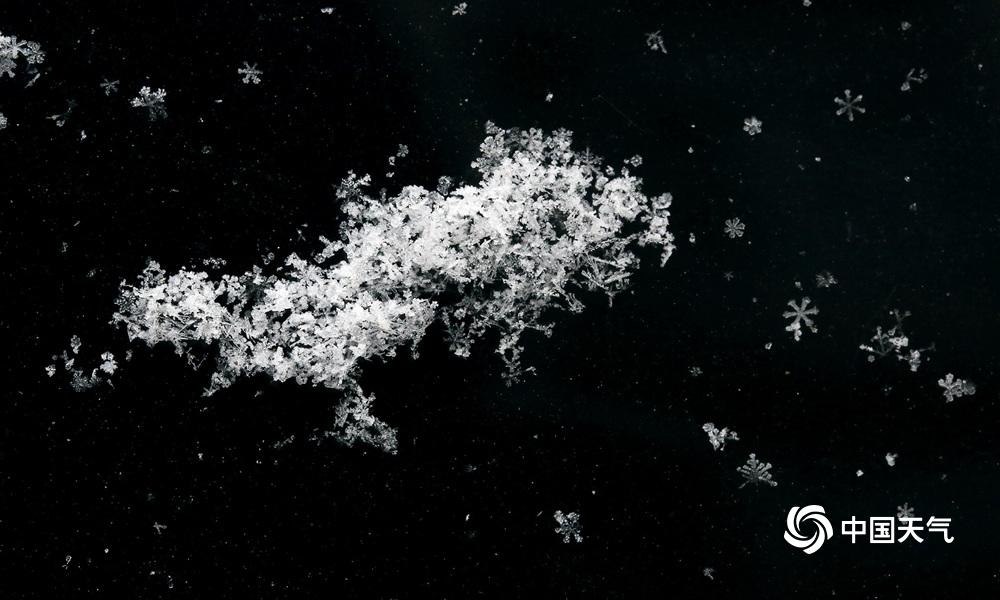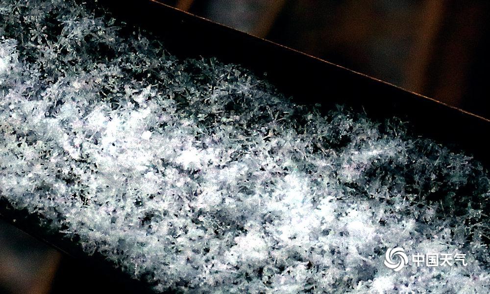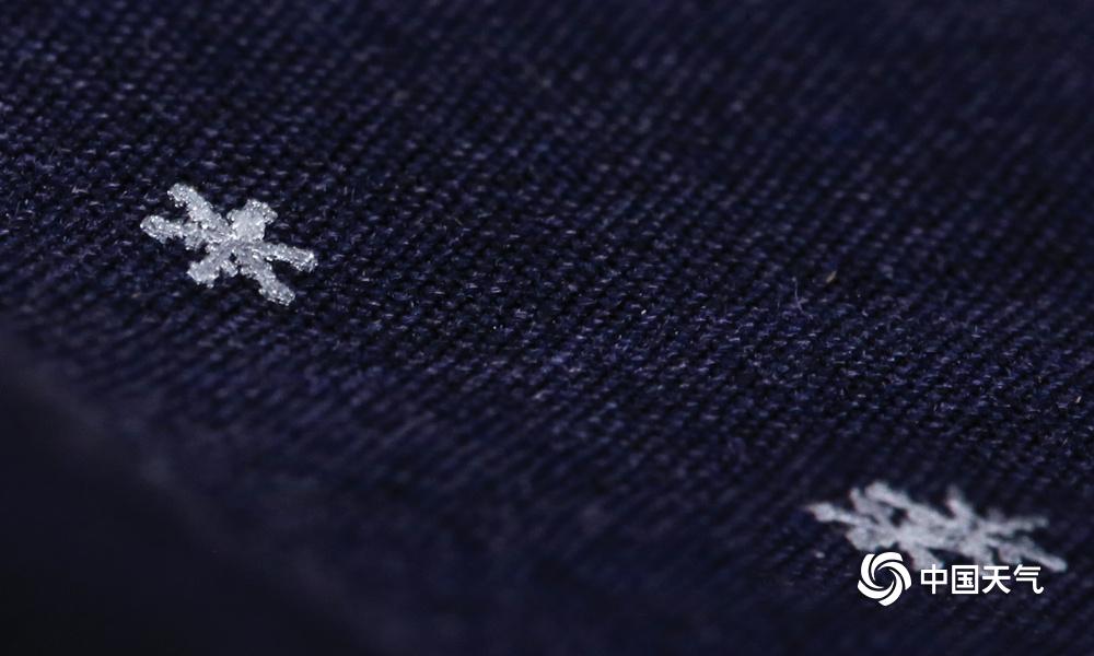 津城一冬的期盼,雪,姗姗来迟,一片片雪花从天上飘落下来降落在城市的每个角落。图为落到衣服上及车窗、植物枝叶上的微观六角形的冰晶。(宛公展/摄)