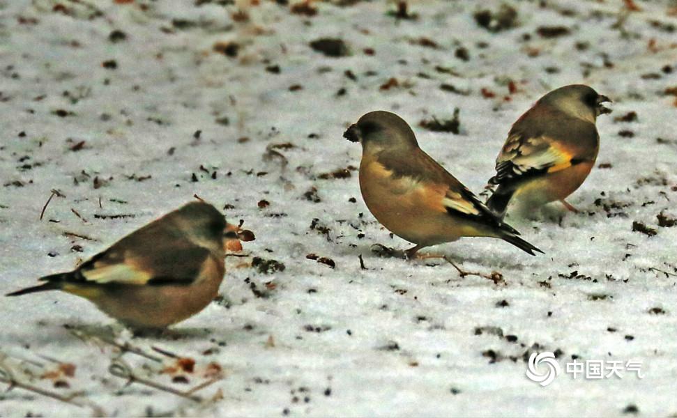 昨日元宵佳节时,津城雪后的南翠屏公园畅观桥西山处柏树上积雪晶莹剔透,小鸟金翅雀雪地觅食,瑞雪映衬美景为节日增添了不一样的色彩。(宛公展摄于南翠屏公园)