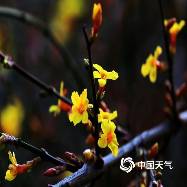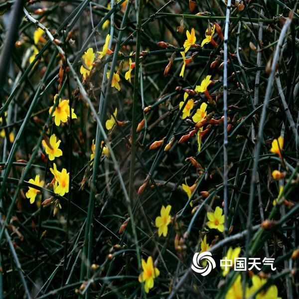 迎春在植物分类学上,属于木犀科,它的初花期,在每年3月初的惊蛰节气前后。天津早春,公园露地第一个报春开花的花卉--就是迎春花。金灿灿的小花盛开,为津城的早春,平添了几笔靓丽的春色。(宛公展摄)