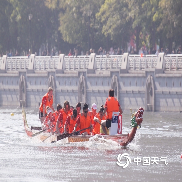 中国天气网讯 10月9日上午,为弘扬“健康向上”的体育精神,“百年南开”世界名校龙舟邀请赛在天津海河沿岸举行。包括来自新加坡国立大学、悉尼大学、澳门大学、香港科技大学、清华大学、北京大学等15所海内外高校的18支队伍的约300名龙舟运动员参加了本次比赛。并以此赛事共同庆祝中华人民共和国成立70周年及纪念南开大学建校 100 周年。(图/宗琪琪)