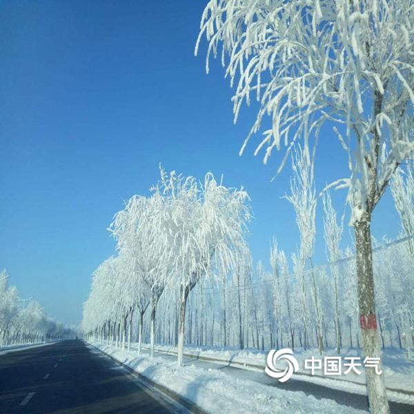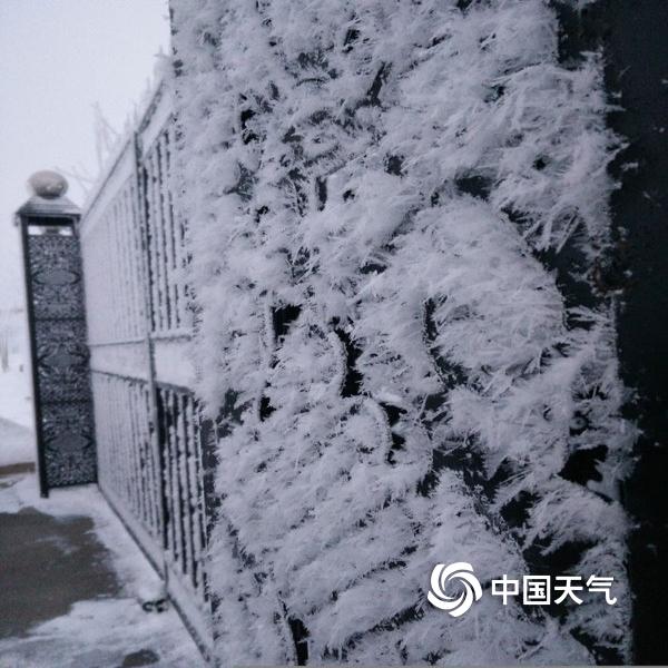 新疆察布查尔县出现罕见雾凇美景(黄坤)