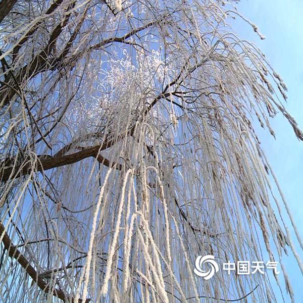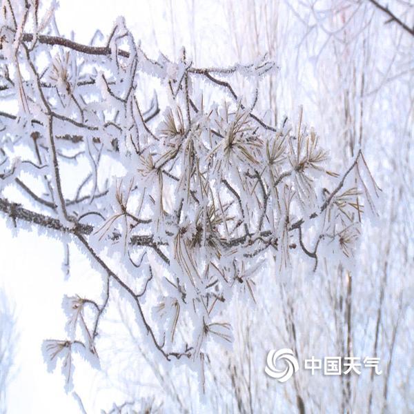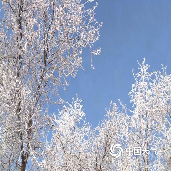 1月21日,新疆奎屯垦区出现了美丽的雾凇景观,一棵棵大树凝霜挂雪,玉树琼枝,一派千树万树梨花开的景象(文/图 :牛云飞)