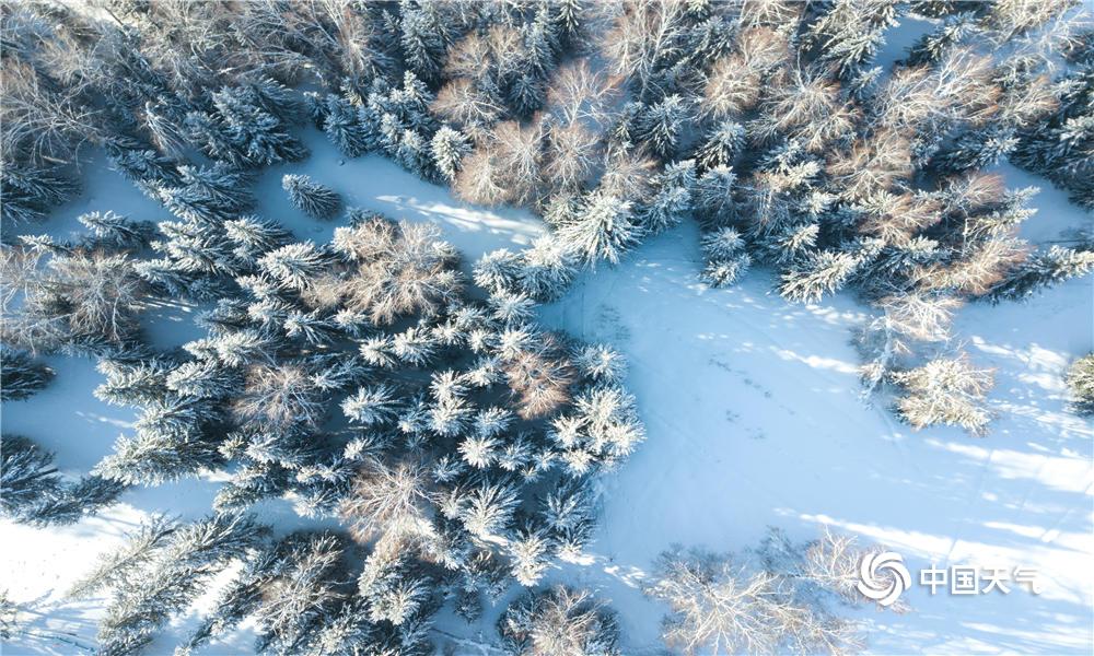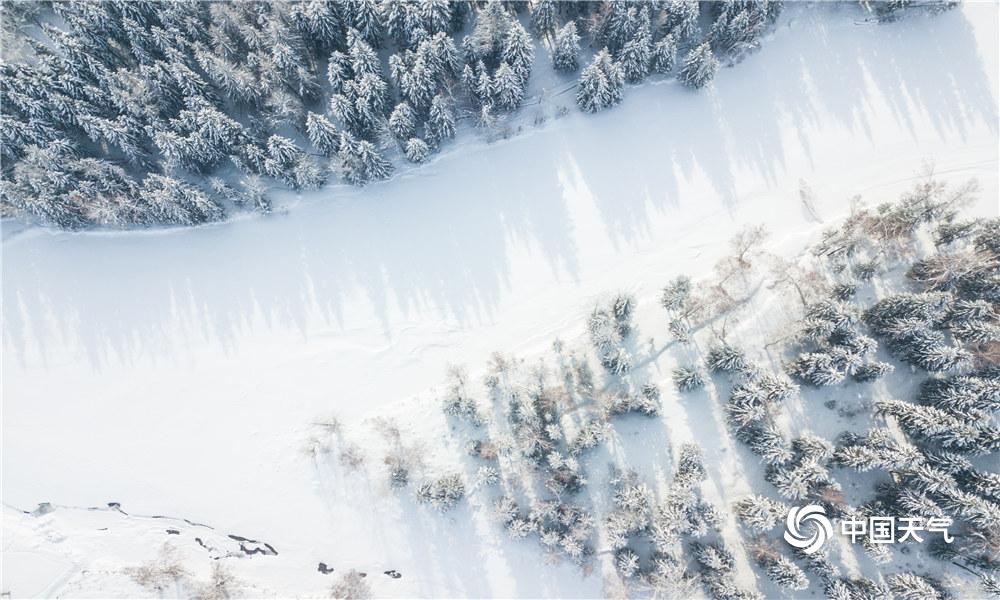3月2日,航拍新疆阿勒泰可可托海的松与雪。(马背上的摄影师/摄)
