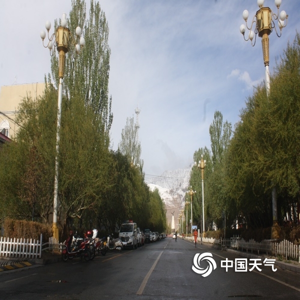 雨水过后的塔什库尔干县蓝天白云,绿树成荫。(图/文马记强)