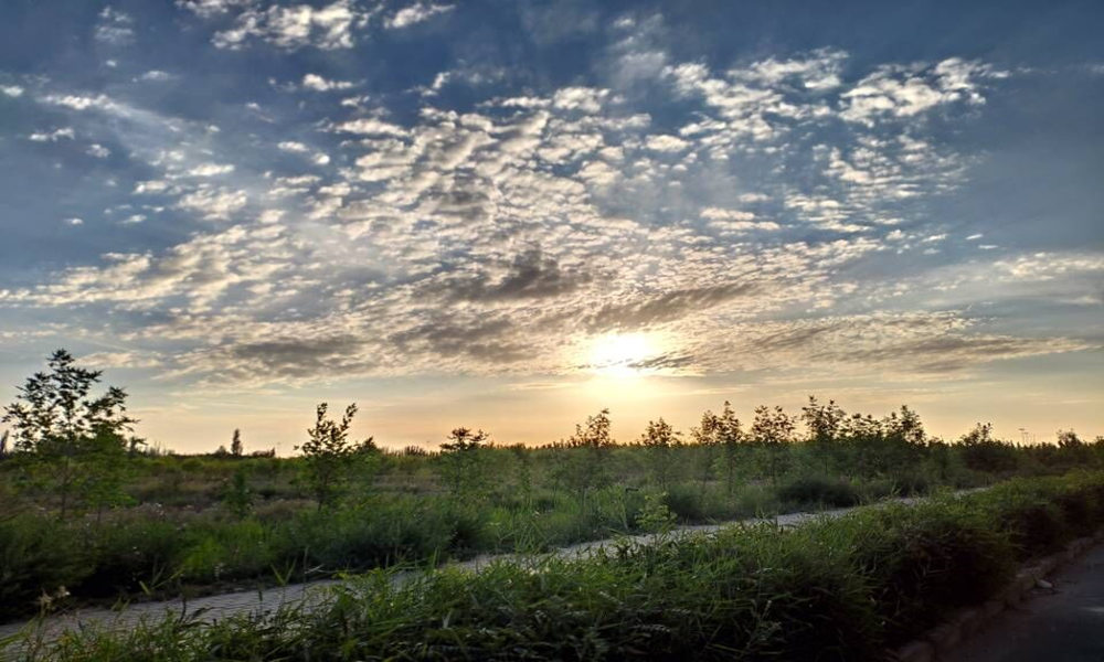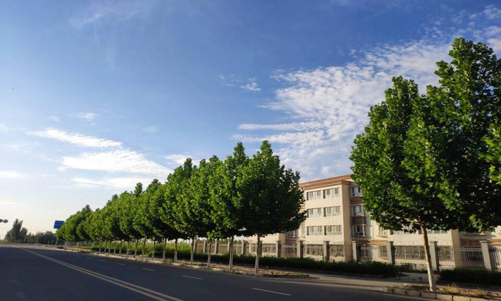 岳普湖县夏至早间美景,在戈壁日出、蓝天白云的衬托下,是那么的美而宁静,堪比世外桃源,令人向往。(向黎明)