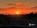 2019年6月20日早晨7点20分岳普湖县,东方出现日出,旭日东升,红霞满天,红日照边了东方。(罗等弟)