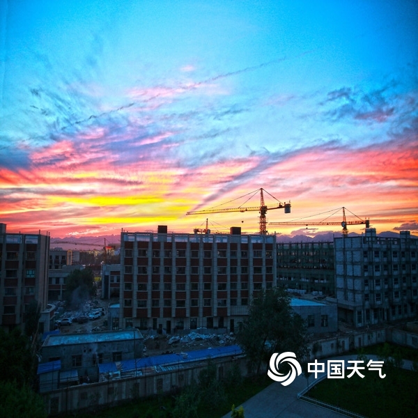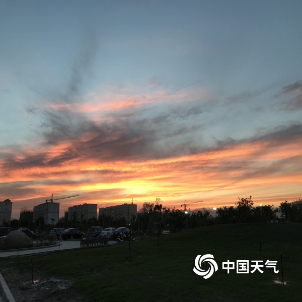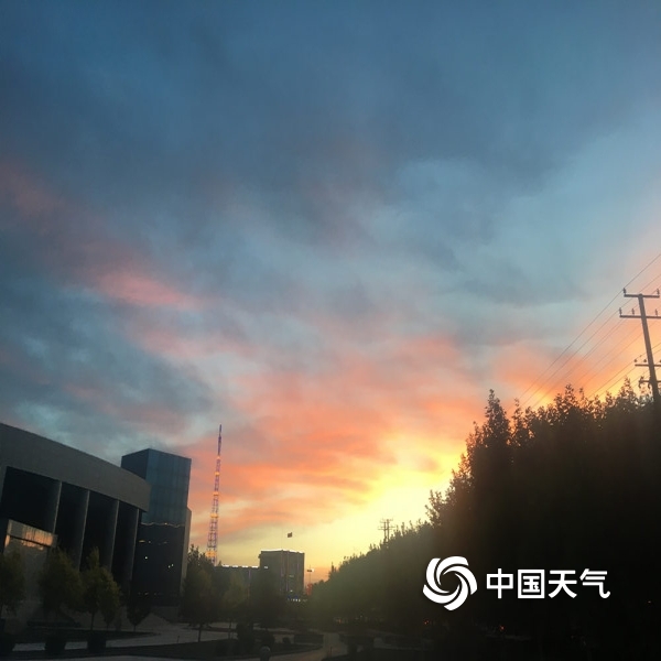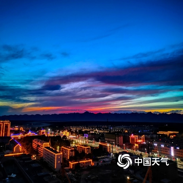 新疆阿克苏新和县阵性降水天气后出现火烧云美景
