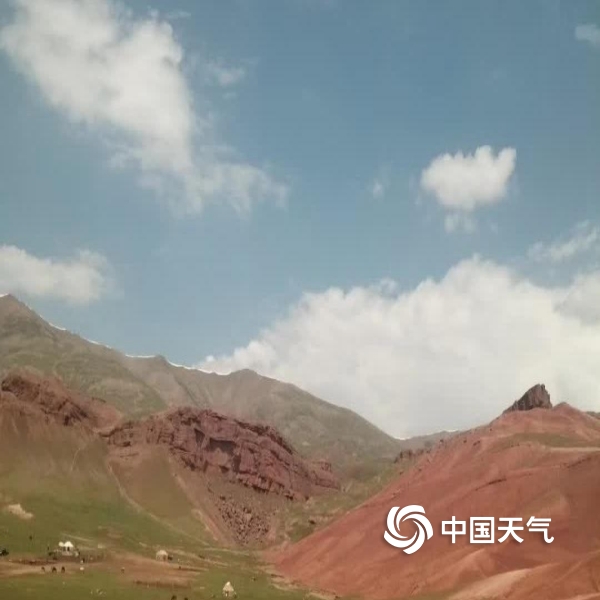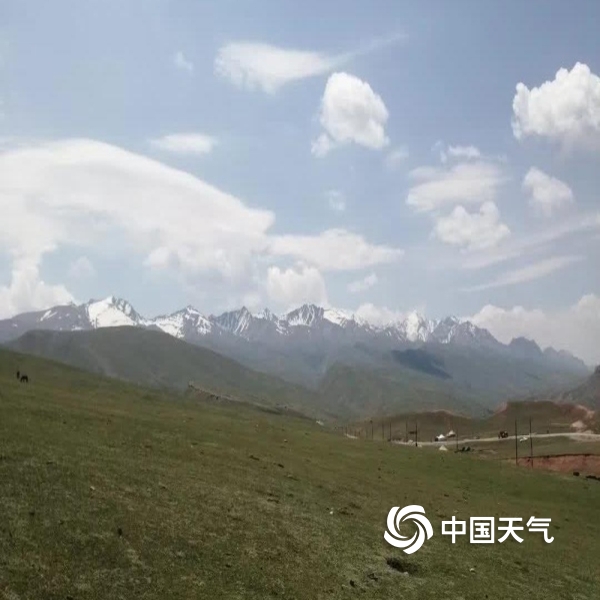 自入夏以来,短时阵型降雨频繁,土壤湿度增大,原本干旱的新疆乌恰帕米尔高原牧场到处生机勃勃。放眼望去,蓝天白云,雪山绿地相映成辉,犹入仙境。帕米尔高原上白的雪、绿的羊、红的山、俊的马,构成了一幅动静结合、刚柔相济的优美画卷(新疆乌恰县气象局 刘月)。