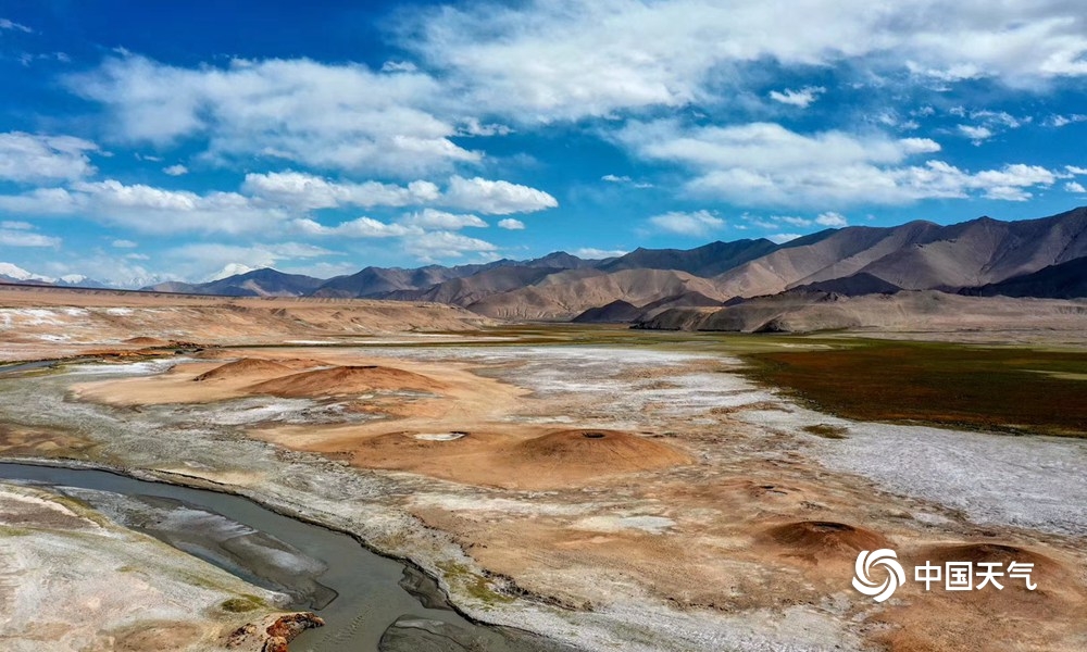 中国天气网讯 9月13日下午,在祖国西部边陲新疆阿克陶县木吉乡神秘的土地上,笔者用镜头记录下这片美丽的景色。1500年前火山喷发,曾经从地下涌出的钙华、铁华和锰华,如今依旧把土地渲染得绚丽多彩。(图/文 外力、库巴尼其别克)