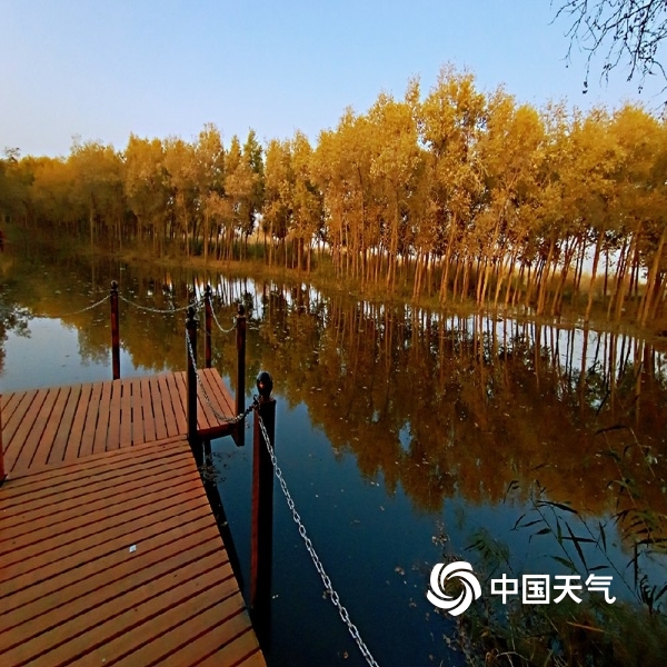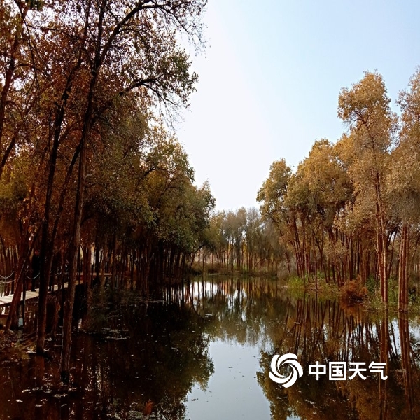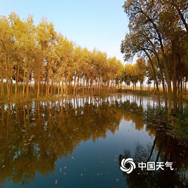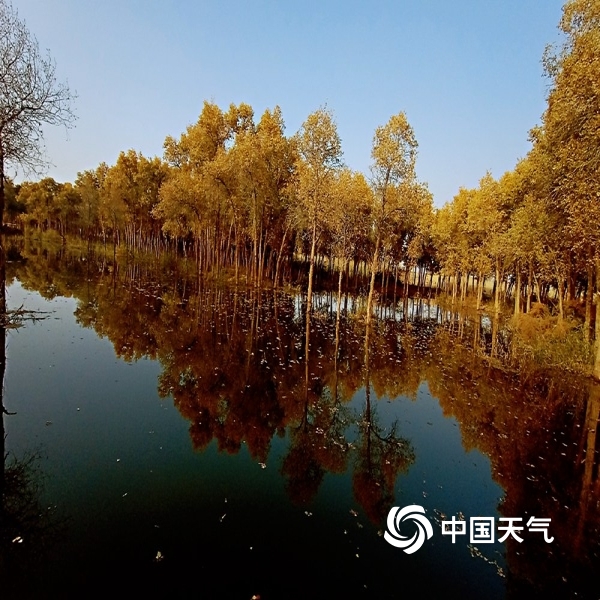 2019年10月22日 12:24中国天气网讯:2019年10月21日,伴随和田天气逐渐变凉,和田河支流玉龙喀什河两岸的胡杨颜色越来越漂亮了,金黄的叶片在阳光下熠熠生辉,甚是醉人,与水中的影子构成一幅美丽的图画。(图文/马小慧)