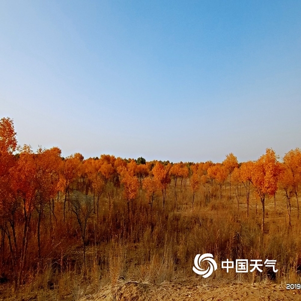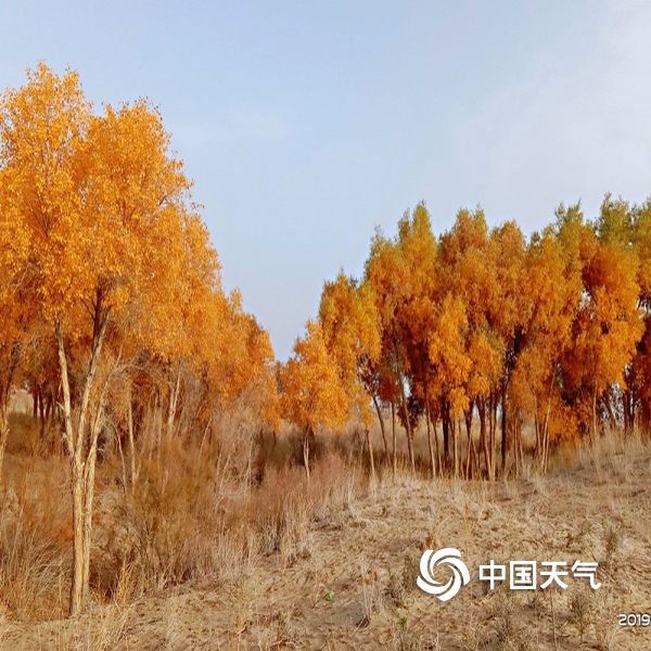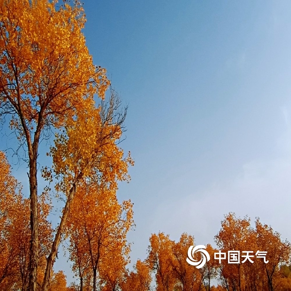 2019年10月22日 12:25中国天气网讯:2019年10月21日,伴随和田天气逐渐变凉,和田河支流玉龙喀什河两岸的胡杨颜色越来越漂亮了,金黄的叶片在阳光下熠熠生辉,甚是醉人。(图文/马小慧)