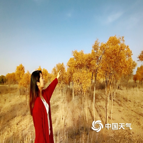 2019年10月22日 12:24中国天气网讯:2019年10月21日,伴随和田天气逐渐变凉,和田河支流玉龙喀什河两岸的胡杨颜色越来越漂亮了,金黄的叶片在阳光下熠熠生辉,甚是醉人。(图文/马小慧)